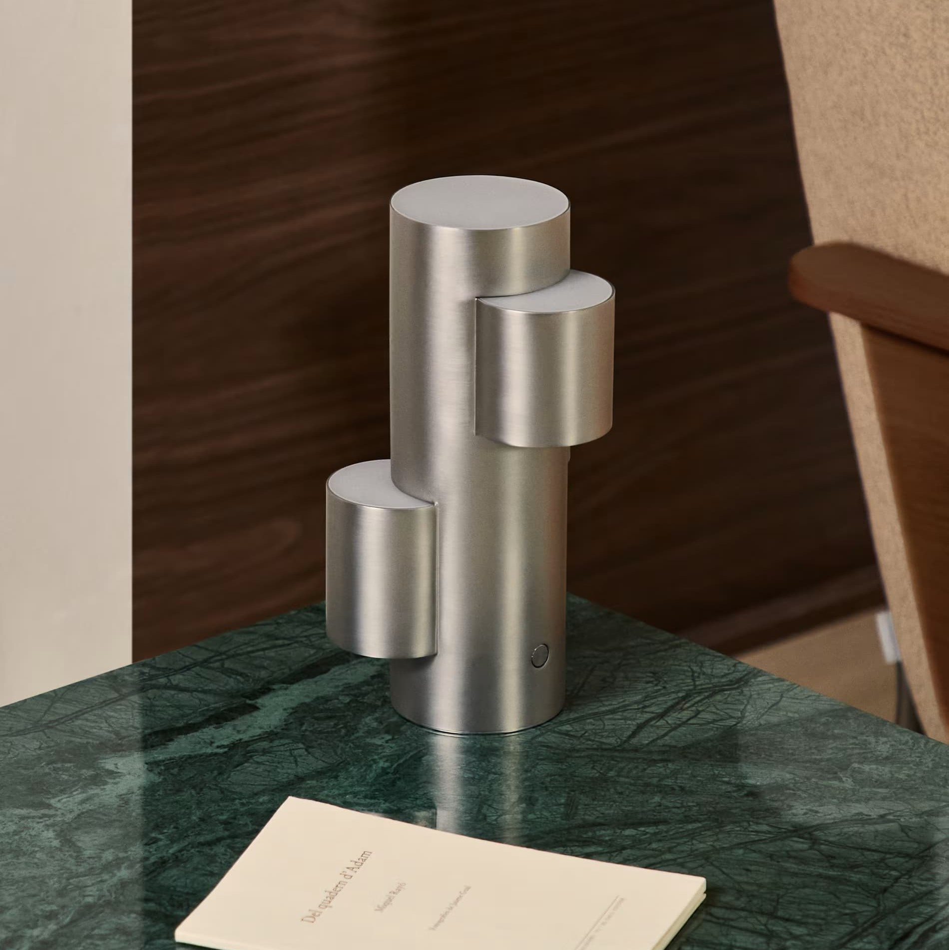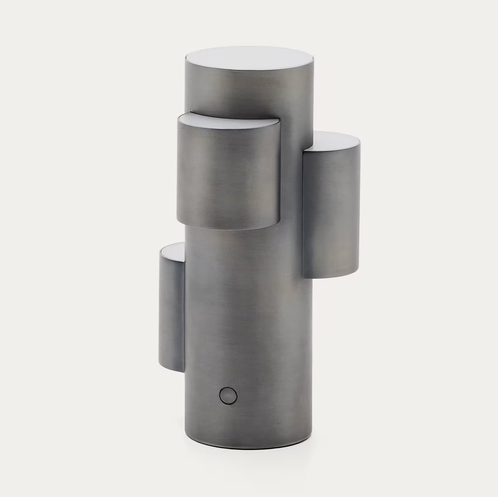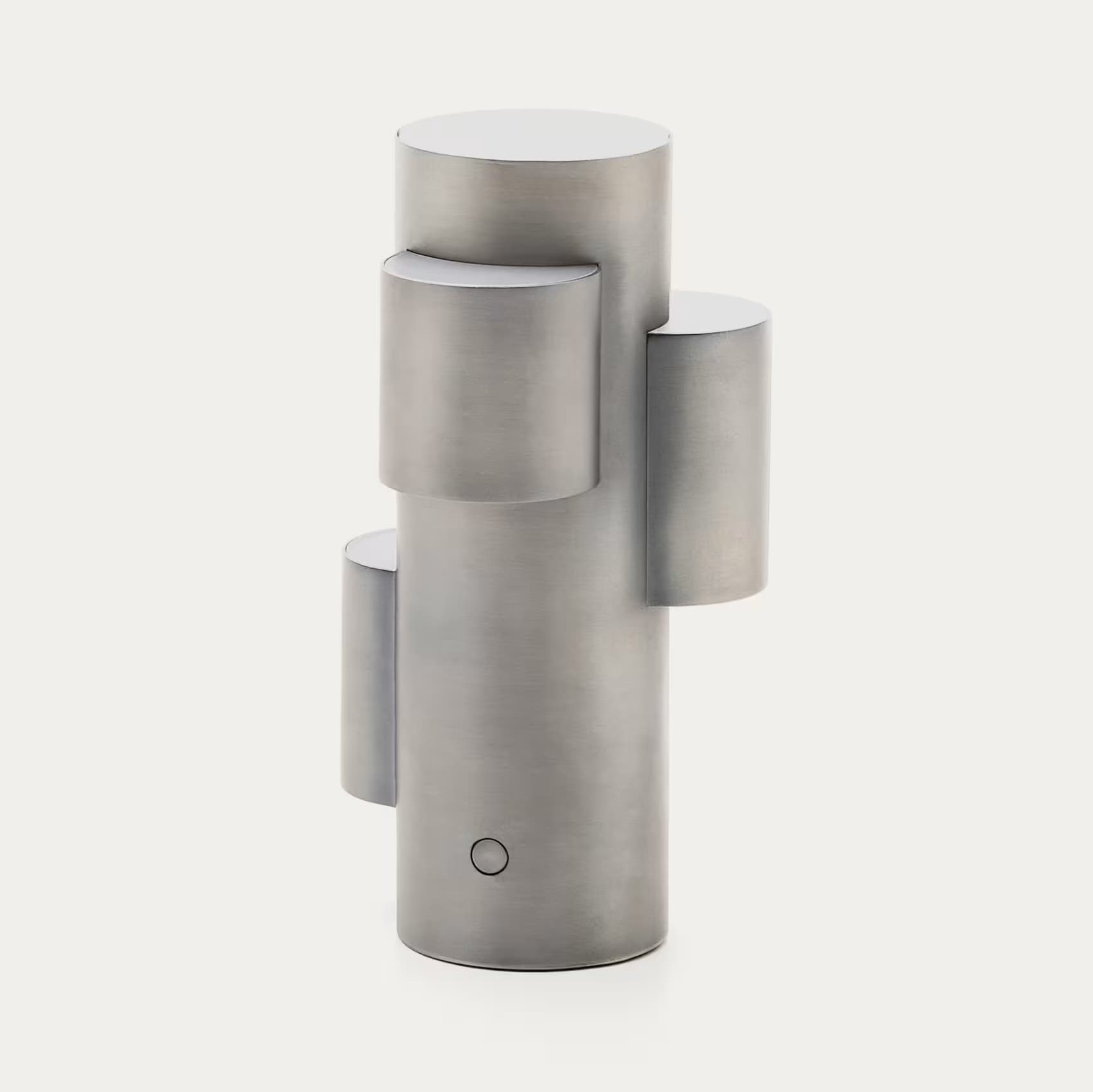 Adrina is a modern portable LED table lamp made of metal in a light gray, brushed finish. Its geometric, cylindrical shape and matte surface give it a sculptural character, which goes well with interiors in a modern, Scandinavian or vintage style. Thanks to the built -in 2.7 W LED diode, 3000 K light temperature, the lamp provides warm, cozy lighting, ideal for relaxation or mood creation.