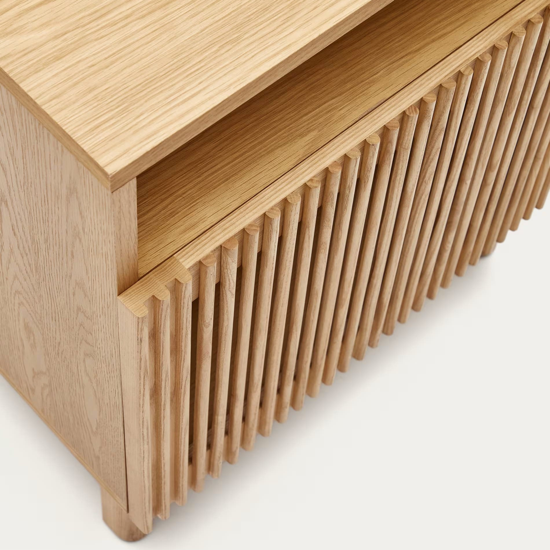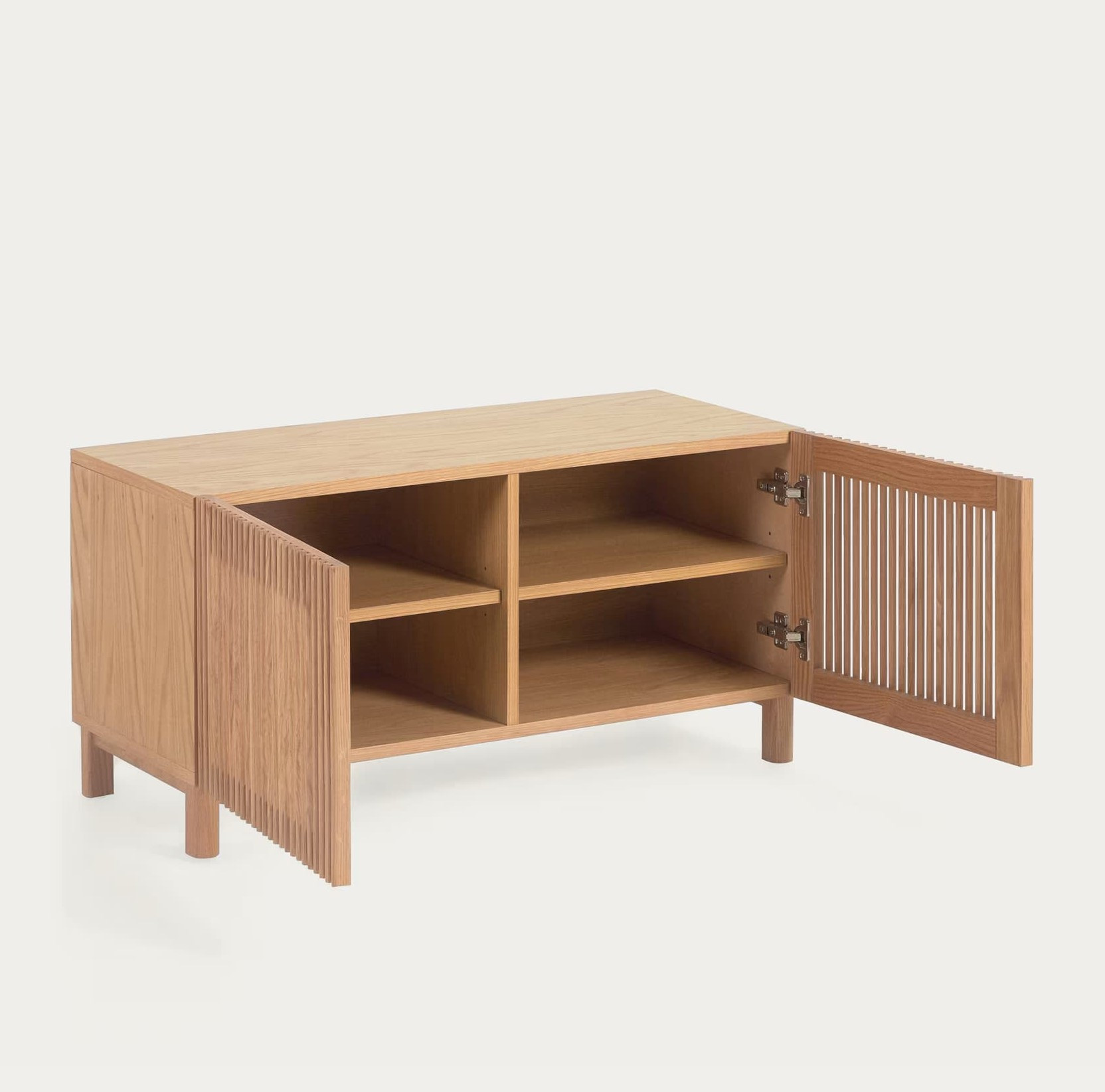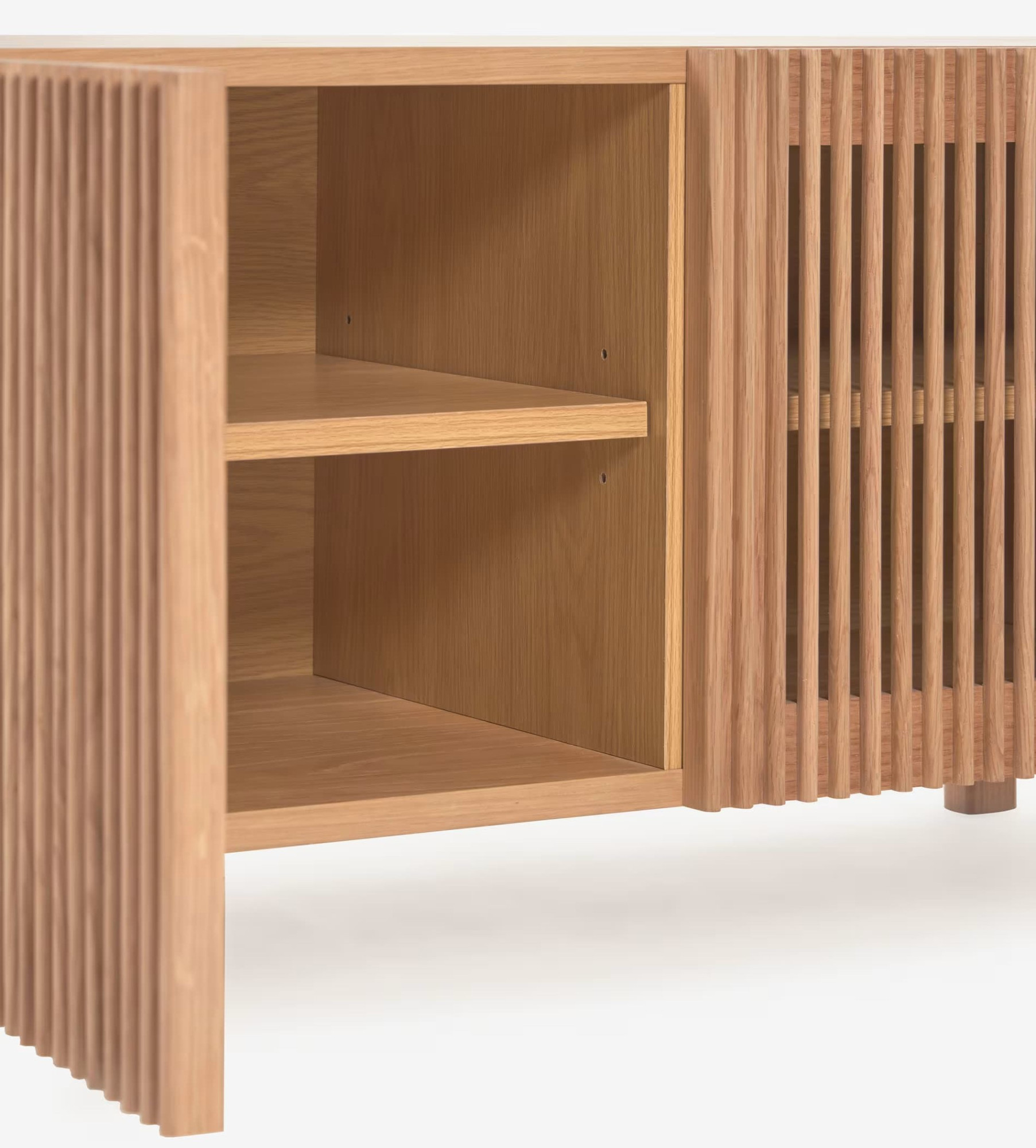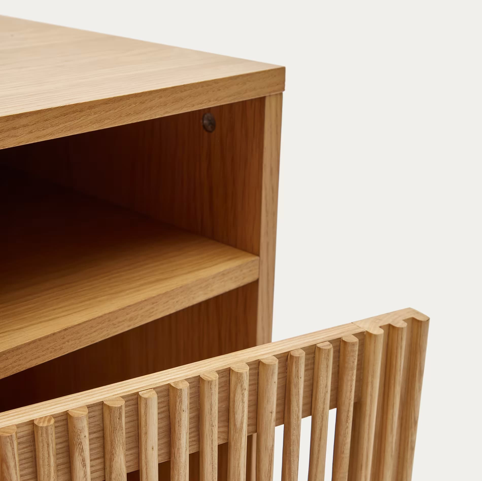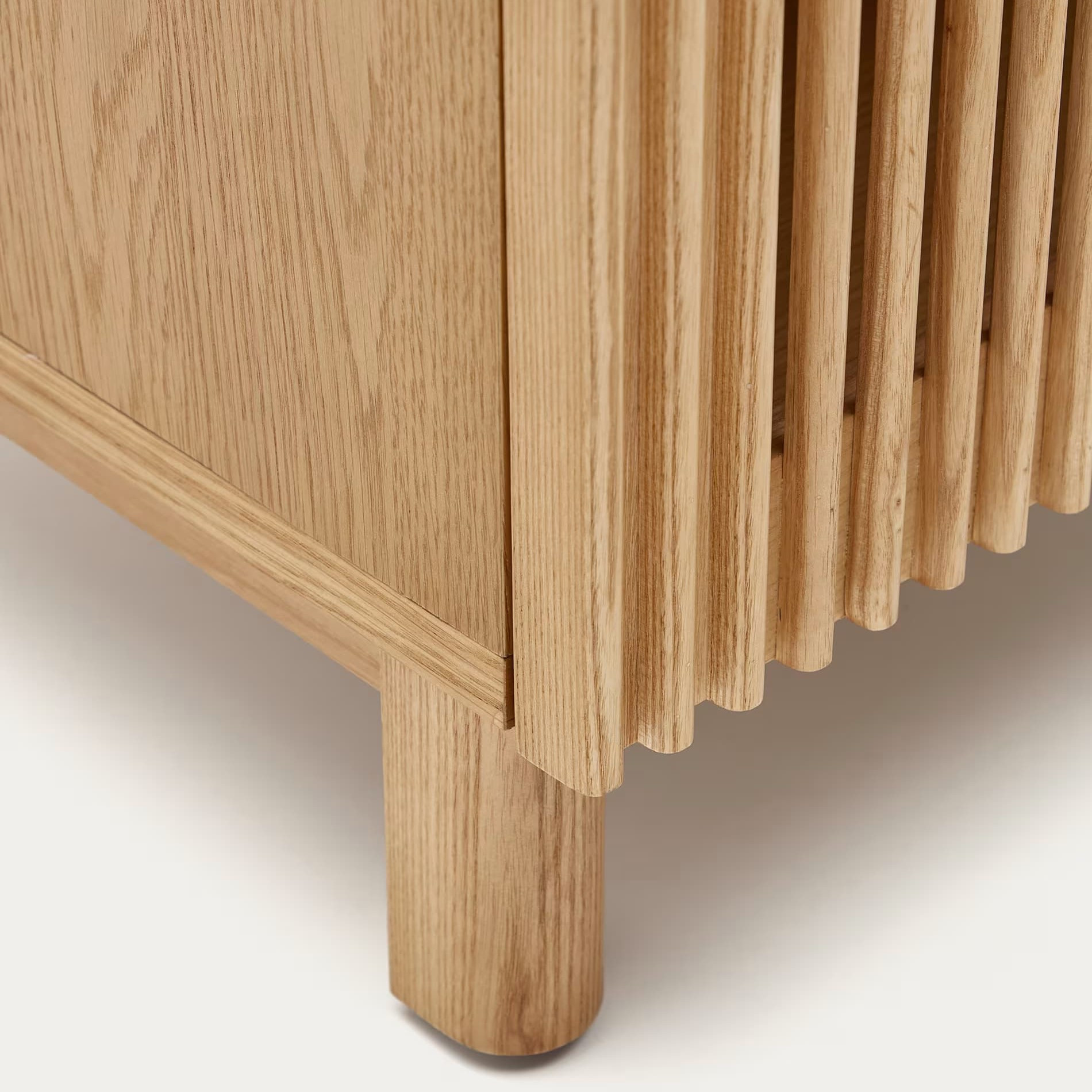 Beyl Spanish brand shoe cabinet Kave Home is a combination of natural wood and modern design. Made of oak and solid wood veneer, it introduces heat and timeless style to the interior. The characteristic vertical slats on the door add lightness to the furniture and emphasize its unique character. The model has 2 doors with a soft closing system and practical shelves with adjustable height, which allow you to perfectly match the space to your needs. The whole is made of 100%FSC ™ certified wood, which is confirmed by the responsible origin of the raw materials.