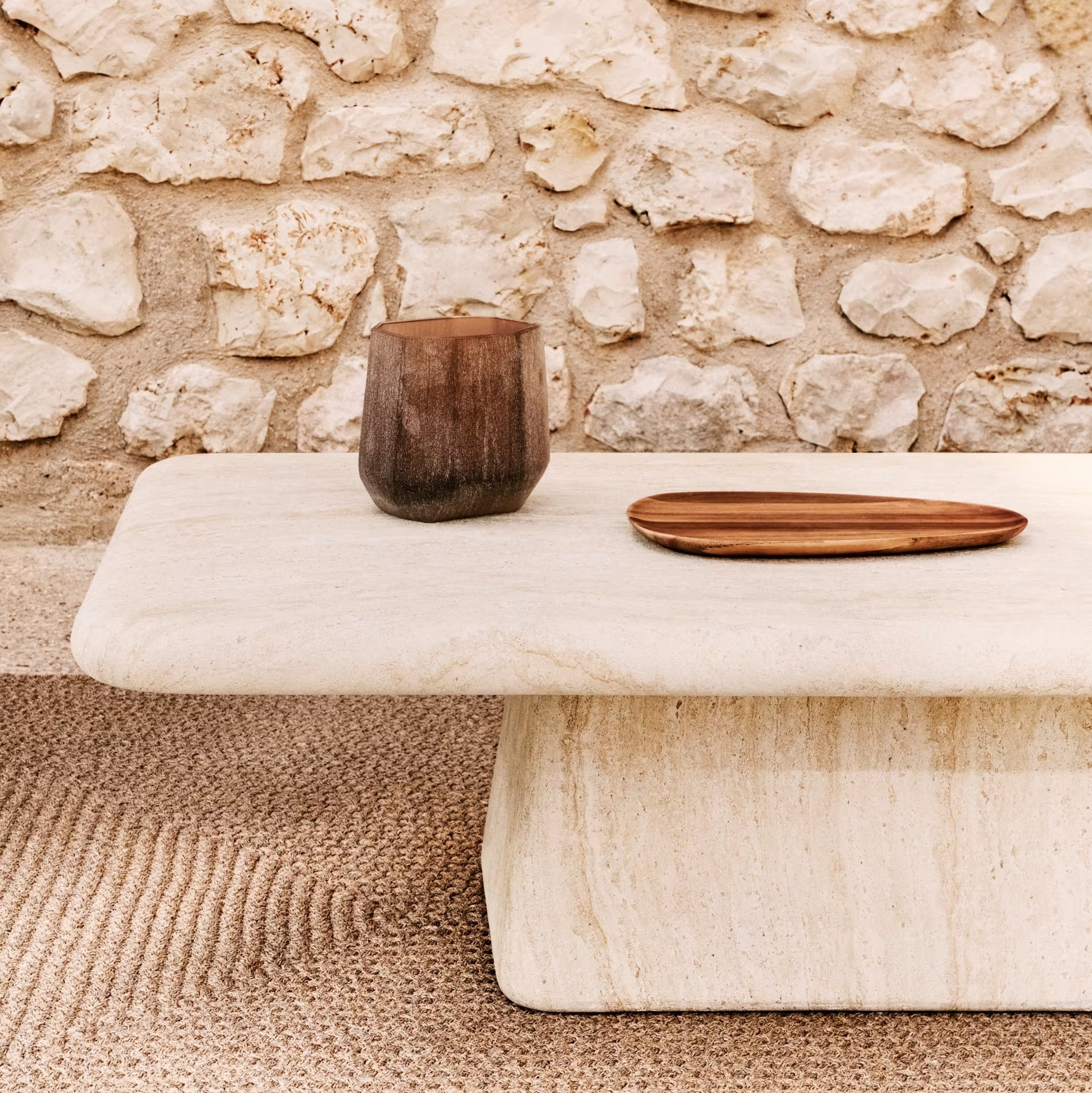 Coffee table from the Drasi collection of the Spanish brand Kave Home. A unique accent in any interior and covered outdoor space. Made ofGFRC – beTonreinforced with glass fiberIt ensures lightness while maintaining high durabilityand itstop and legs imitate travertineGiving a subtle, rustic character in Scandinavian style. Each piece hasa unique Tonization and texturewhich makes it a unique element of any arrangement.