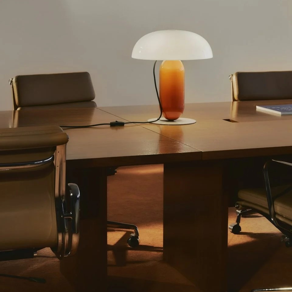 Gambosa table lamp by Marset It is an elegant harmony of form and color that transforms any interior. Designed by Mathias Hahn, it combines a steel frame with a subtly floating lampshade, creating the effect of "levitating" geometry. The round base ensures stability, and the lampshade is available in pastel pink, black or opal methacrylateallows you to obtain both direct and soft, diffused light. This is a modern table lamp that adds an artistic accent to any interior. A frame in shades of orange or moss gray and a stone base They complement the aesthetics, creating a dynamic and coherent design.
