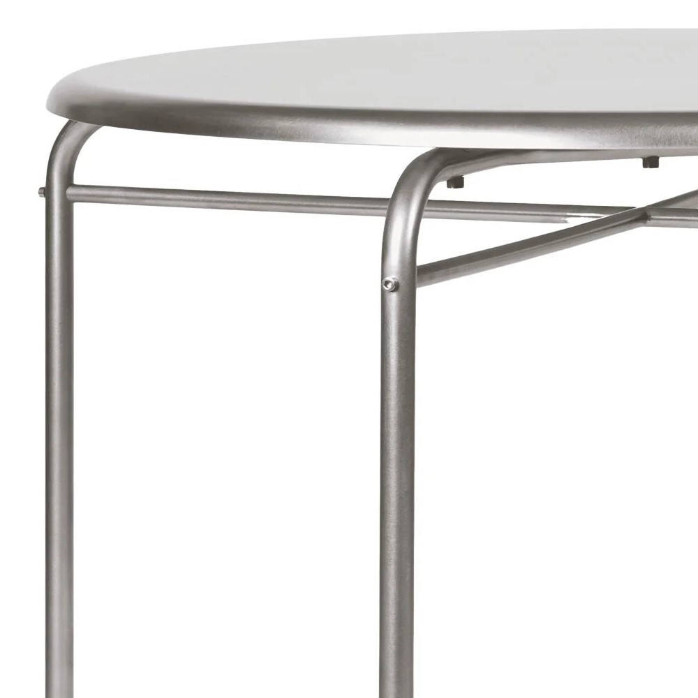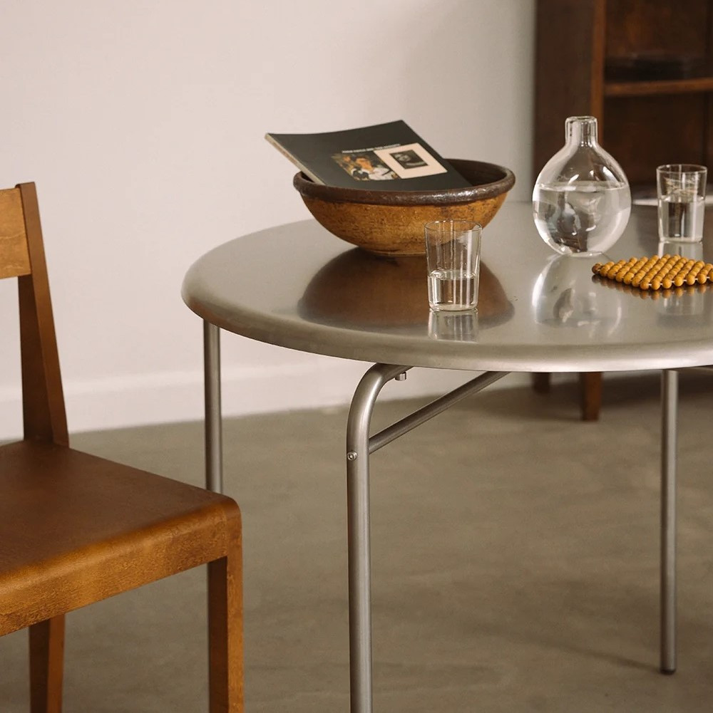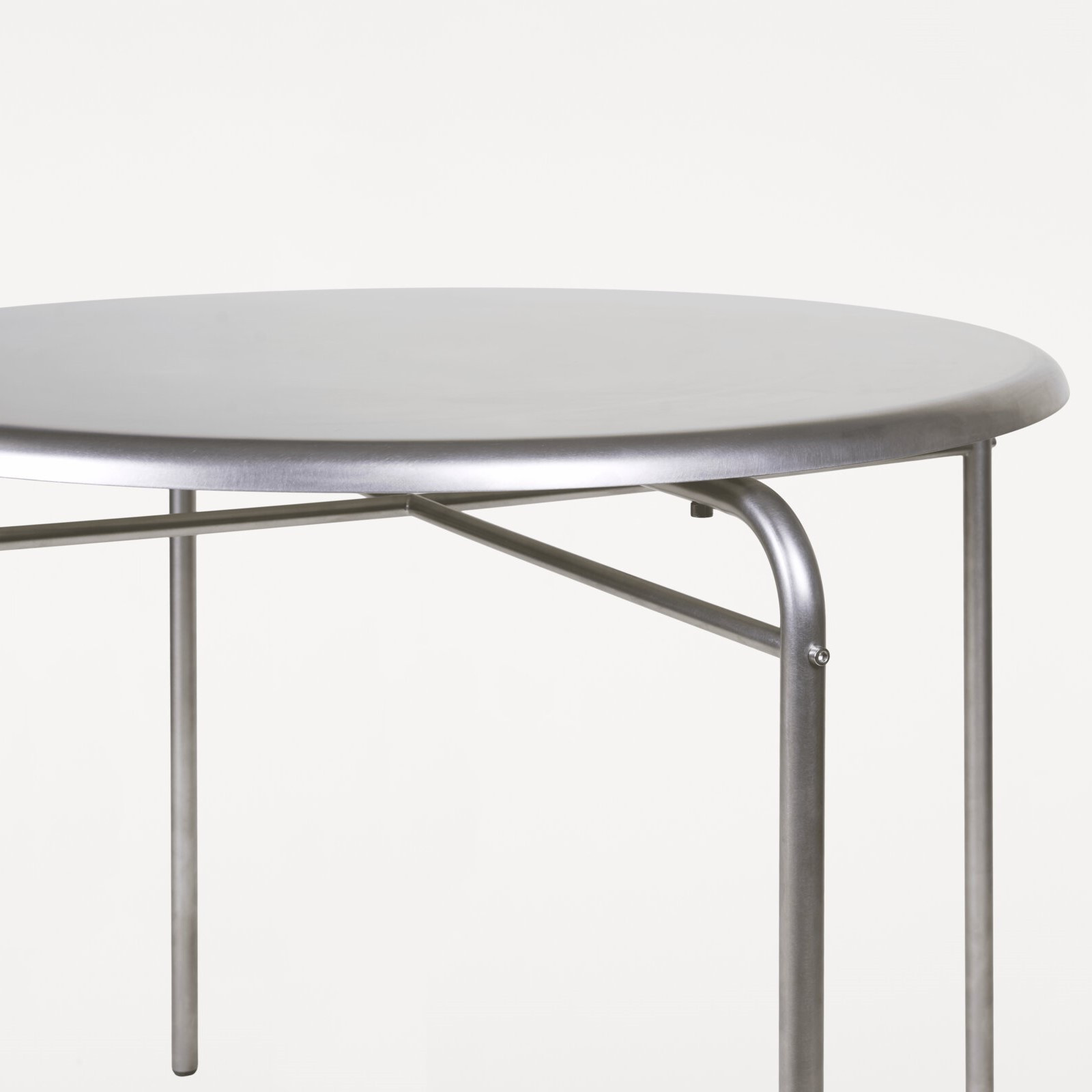 The Petit Rond table is an architecturally designed utilitarian object that combines a minimalist form with industrial precision of workmanship. It was created in the spirit of contemporary Danish design, where function and aesthetics are equivalent values, and every detail has structural and visual significance. Made entirely of stainless steel with a brushed finish, the table stands out for its raw elegance and timeless character. The round top with a diameter of 90 cm is mounted on a slim but stable base, which gives the block visual lightness despite its solid construction.