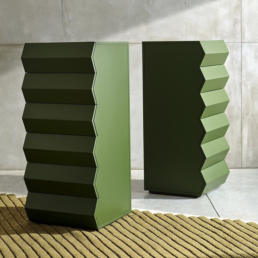 Discover theZ24 Zanotta chest of drawers – a unique piece of furniture that combines functionality with artistic expression. Its MDF structure, finished with matte varnish in the following colors: talc, wax, hemp, caramel, orange, amaranth, grass green, algae, espresso and black, introduces an original color palette to the interior. The characteristic, geometric zig-zag motif makes each chest of drawers a sculptural accent that enlivens the space without overwhelming it.
