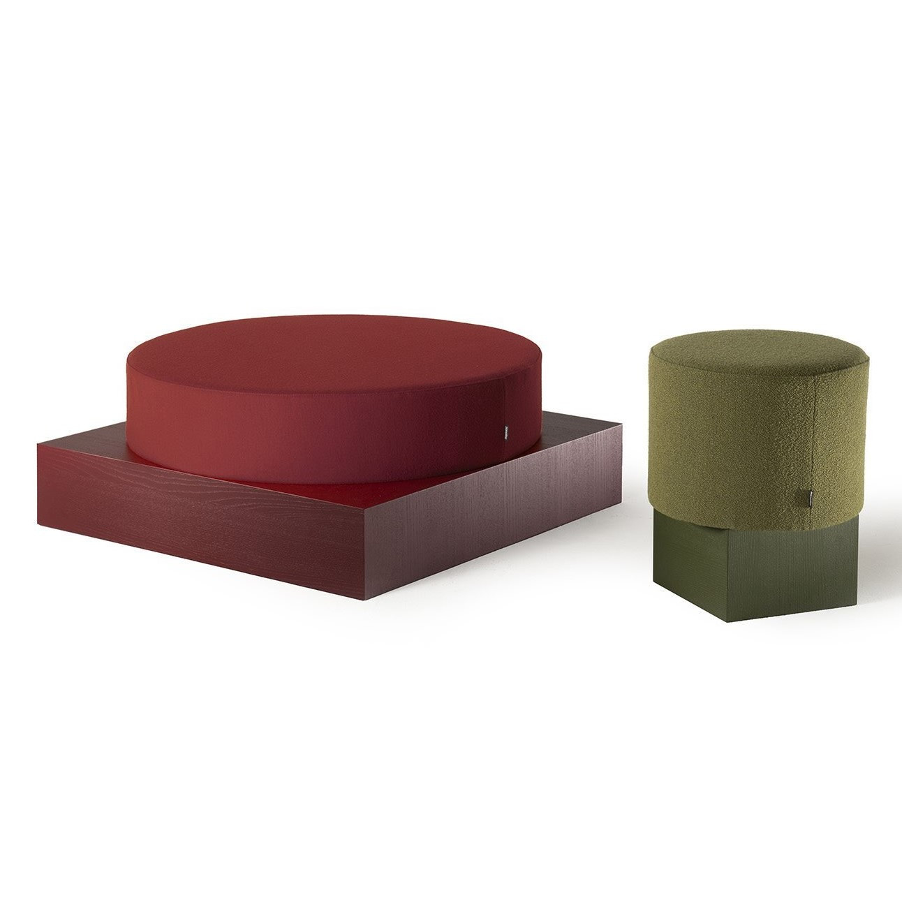 Upholstered, modernZymmo pouffe Zanotta It is a combination of elegance, comfort and functionality. A solid MDF structure, veneered with ash, caramel, algae, amaranth or black ash, gives the furniture lightness and a subtle character. The seat is filled with polyurethane foam with partial plant polyols, and the fixed internal polyester cover guarantees durability and stability.